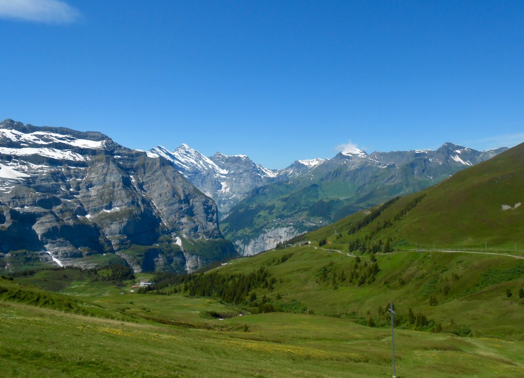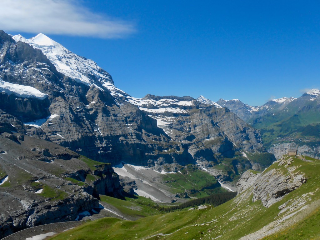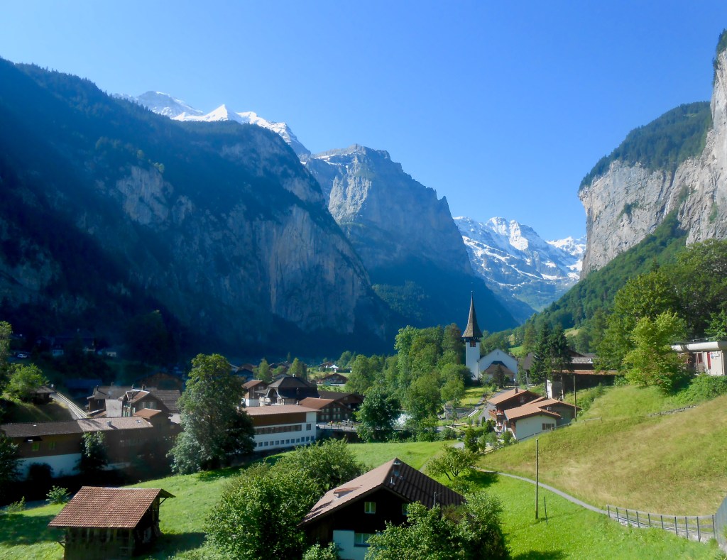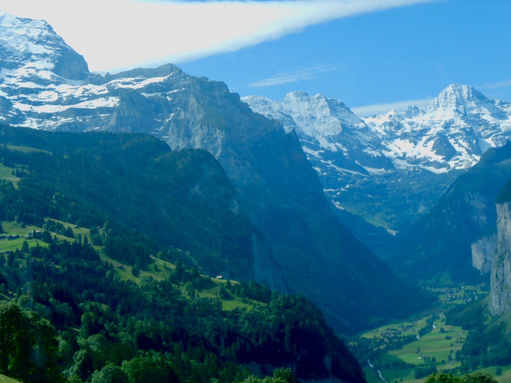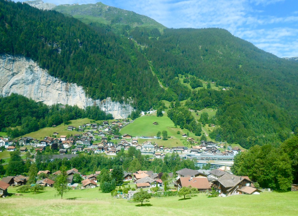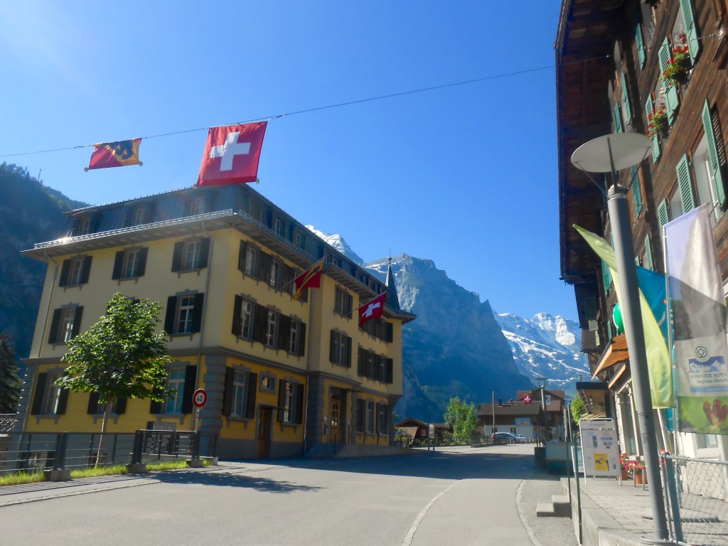 My accommodation was in Lauterbrunnen – a village in the Canton of Bern with a population of approximately 2,300 people. The Lauterbrunnen Valley is one of the deepest in the Alps, and in most parts is less than one kilometre wide. The result is an idyllic village surrounded by extremely steep precipices and 72 waterfalls which spill out over the Valley’s sheer cliff faces. Indeed, the name ‘Lauter Brunnen’ means ‘many fountains’ in German. The river Weisse Lütschine flows through the village.