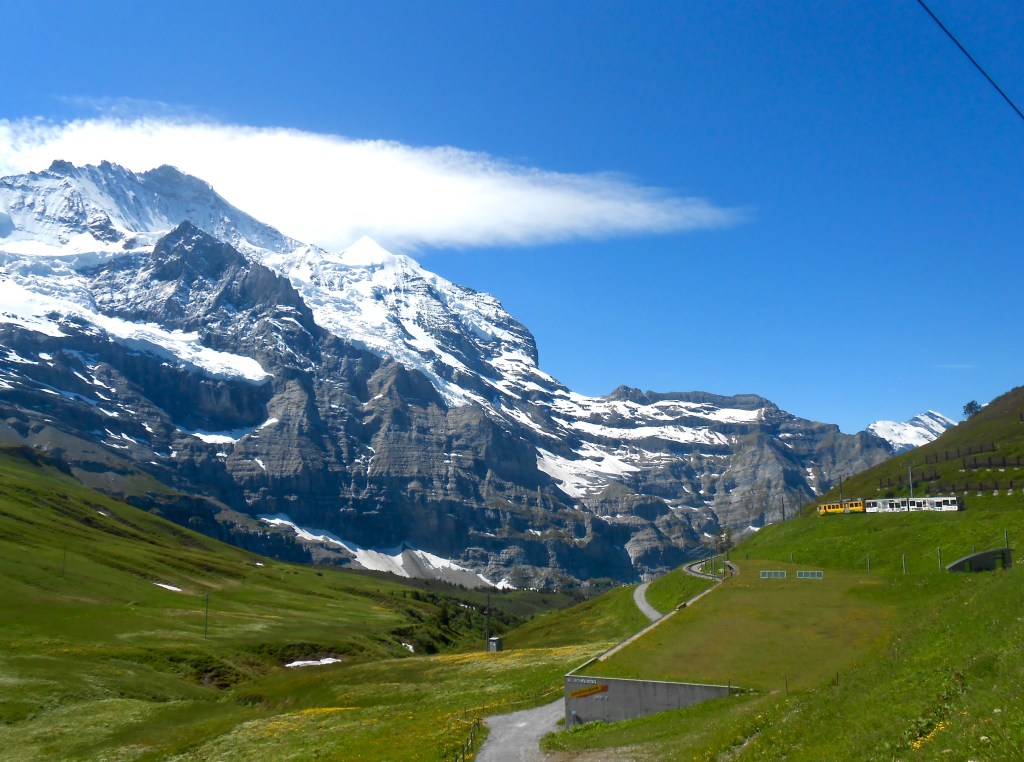 Kleine Scheidegg Station, the start point for the Jungfrau Railway, is perhaps the most beautifully situated of any railway station I have ever seen. There was something spectacular about the red train approaching against the backdrop of the surrounding snow-covered mountains and green alpine meadows. Situated next to the tracks is the Hotel Bellevue des Alpes which featured in The Eiger Sanction (1975) starring Clint Eastwood. Ideally located at the foot of the Eiger’s North Face – which is also known as “murder wall” after the scores of mountaineers who have died there – the Hotel first became famous during the 1930s when the press and spectators would gather on the Hotel’s balconies to follow the progress of mountaineers climbing the Eiger.