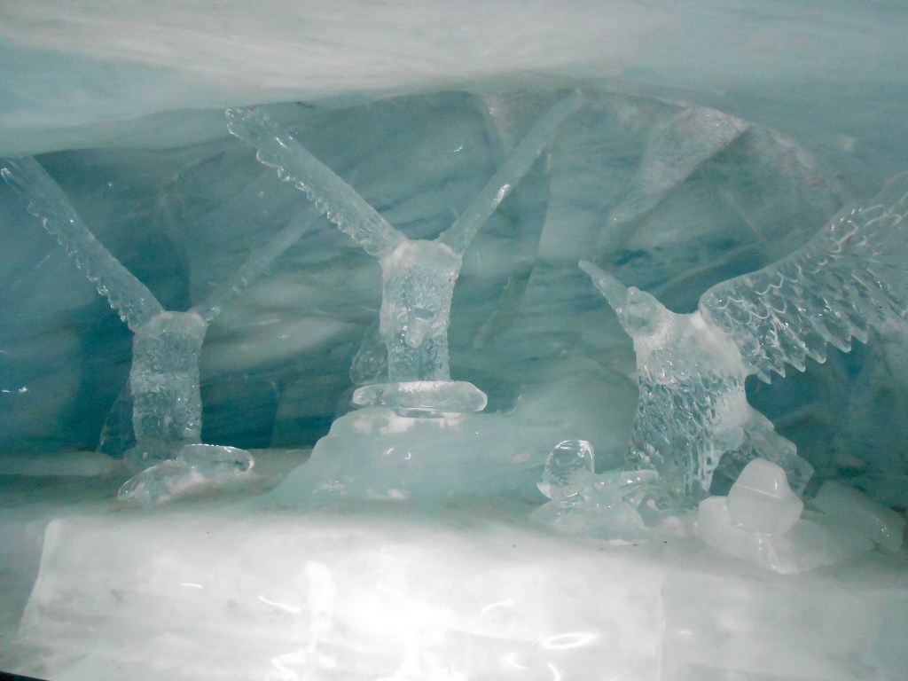 The inside complex was impressive with restaurants, souvenir shops, a Lindt chocolate shop and experience, Europe’s highest post office, and an ‘ice palace’ consisting of ice tunnels and sculptures carved out of the glacier. There was also a cheesy ‘Alpine Sensation’ display geared more towards children.