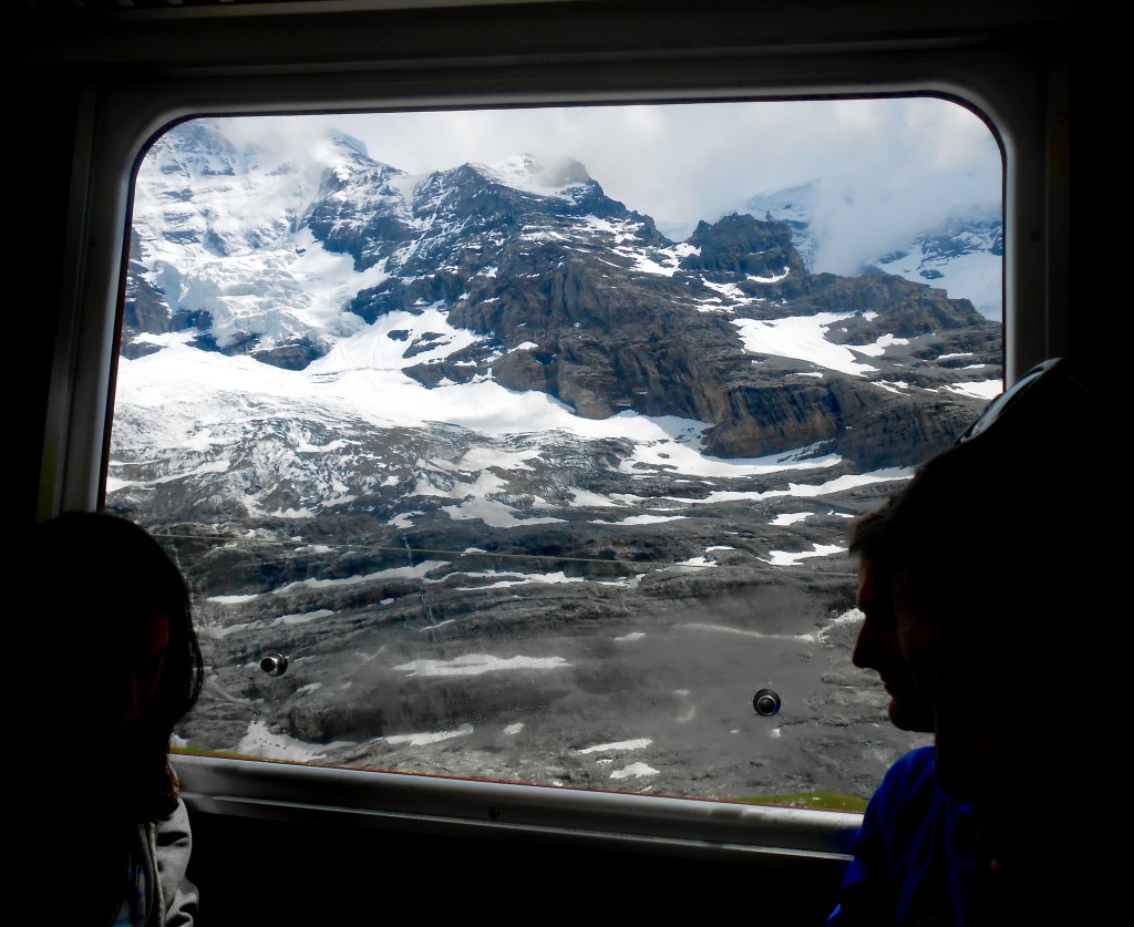 Continuing up inside the Eiger and Mönch mountains after its brief tunnel stops, there was much excitement as the train arrived at Jungfraujoch.