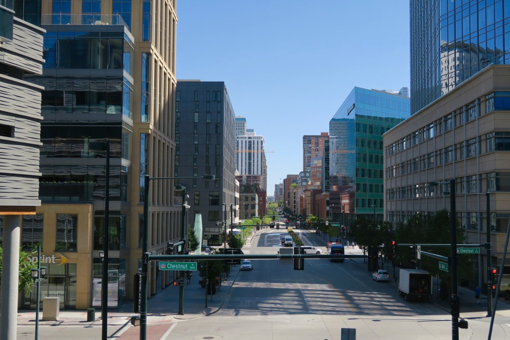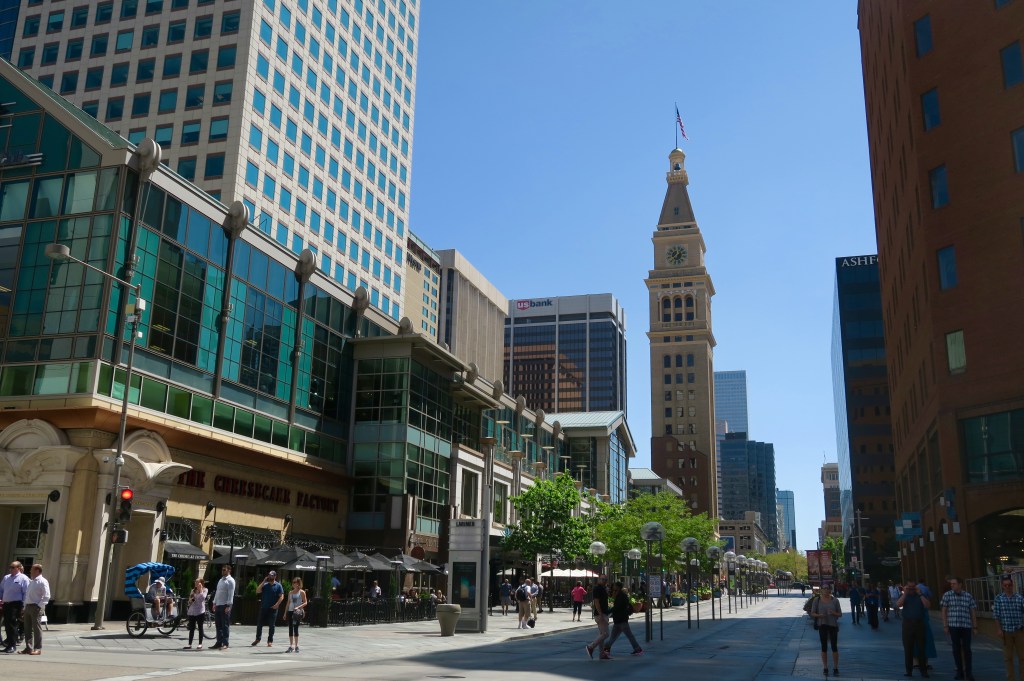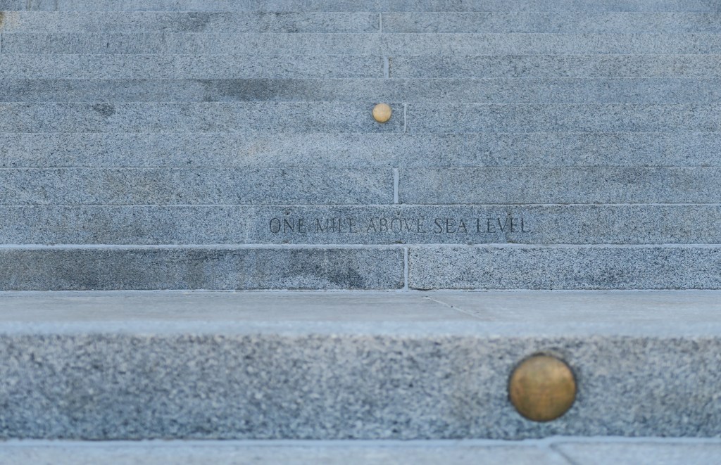 I found Denver to be a pleasant city. It reminded me somewhat of Portland, but with more attractions to keep one occupied. Highlights included Larimer Square (a historic part of the city), and the State Capitol Building with its gold leaf dome. I took a guided tour of the latter and the elderly gentleman leading the tour was the most passionate guide I have ever encountered. He wept as he told us stories which had nothing to do with the Capitol Building, but which were interesting nonetheless. In addition to his old age, he was profoundly deaf and somehow came to be under the impression that I had travelled all the way to the USA just to take his tour of the Colorado State Capitol Building – a story which he excitedly repeated to the rest of the tour group three times. One of the women in the tour group tried her best to convince me that I was seriously ill, or would soon become so, because of Denver’s high altitude. The pictures below show the view from the Capitol Building’s dome observation deck which provided great views of the Rocky Mountains, as well as the steps leading up to the building where text marks the spot that is apparently exactly one mile above sea level. However, disagreement abounds in the Mile High City, with the gold markers in the picture below showing other spots that experts have claimed lie exactly one mile above sea level.