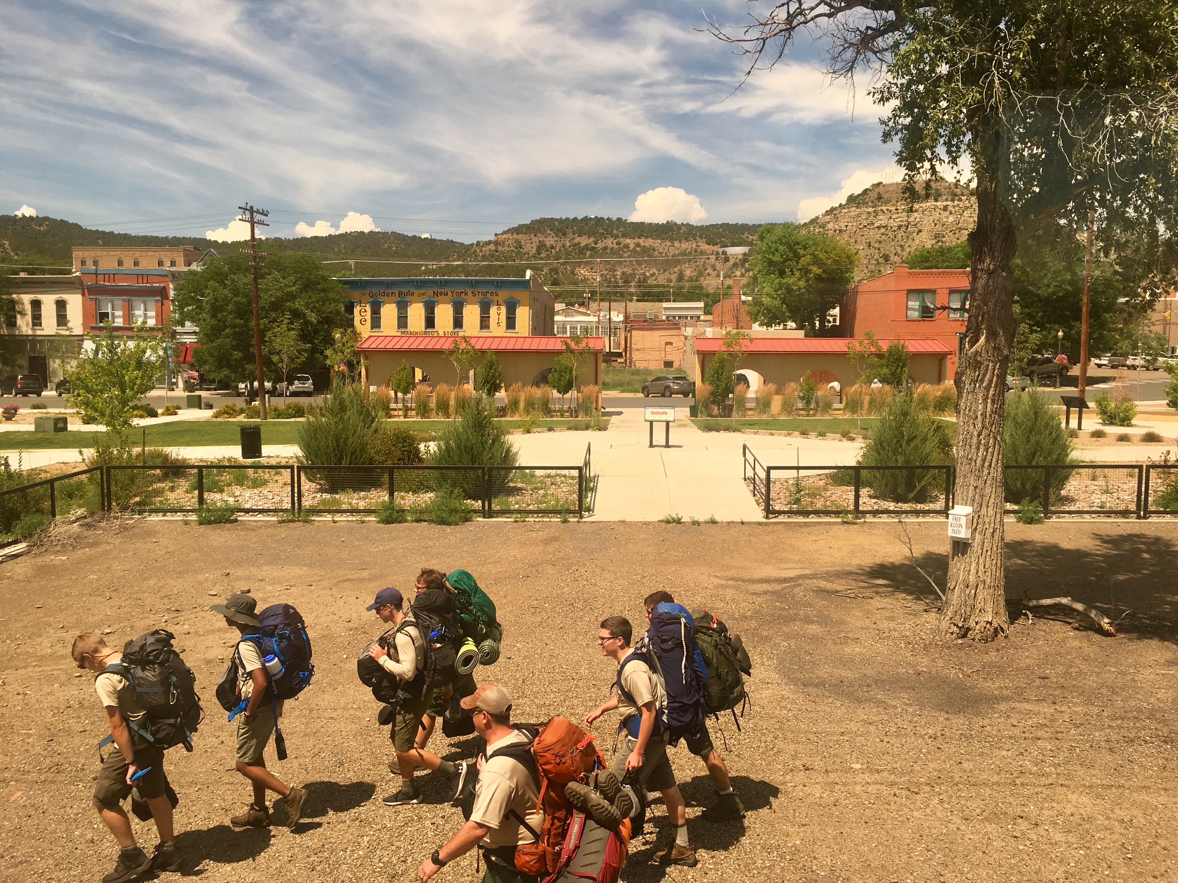 Boy scouts who alighted from the train in Raton. The cafe attendant on the train made an announcement that if anyone intended to purchase food, they better do so before the next lot of ravenous boy scouts boarded.