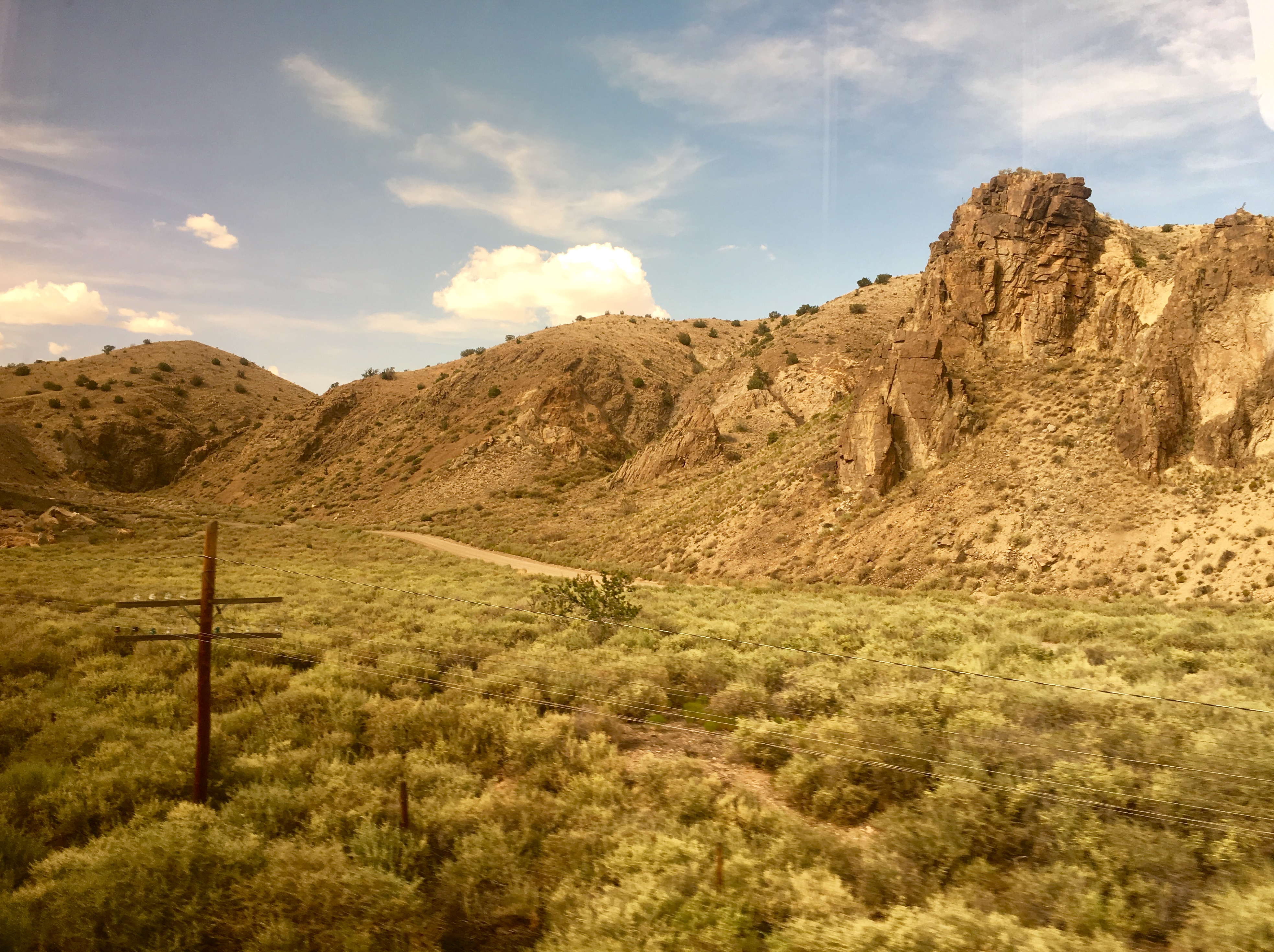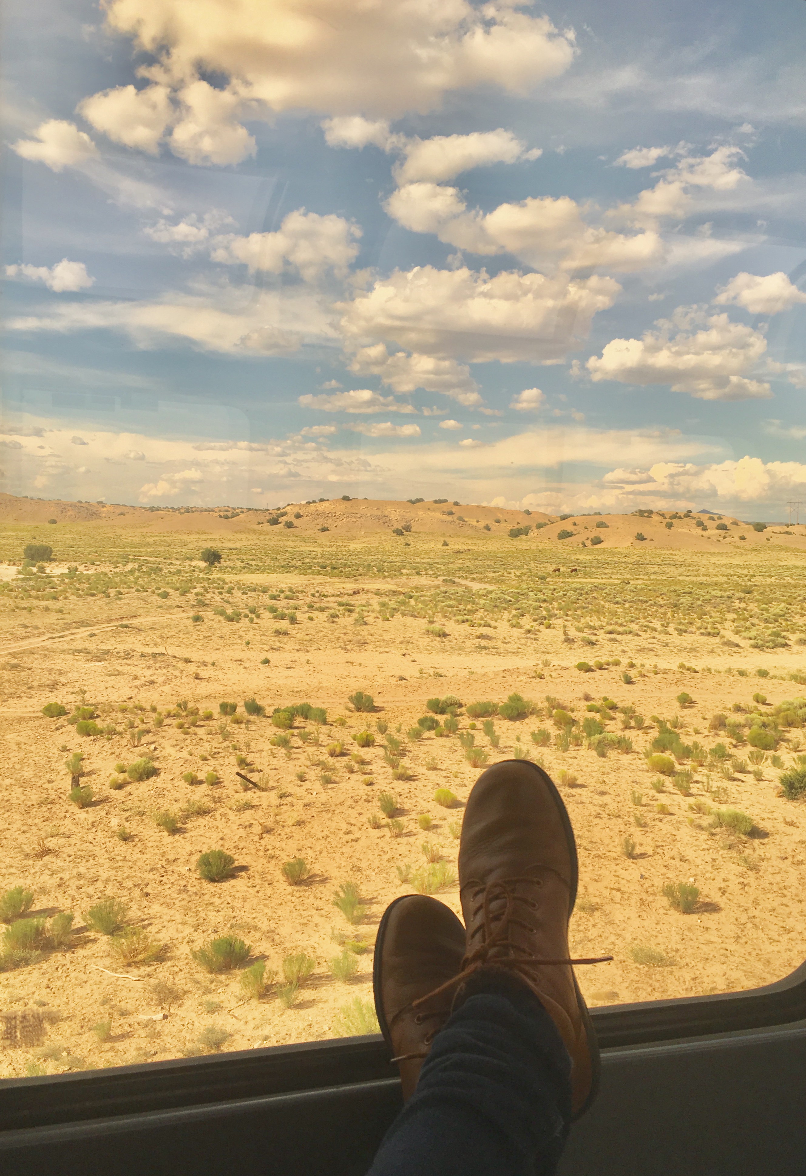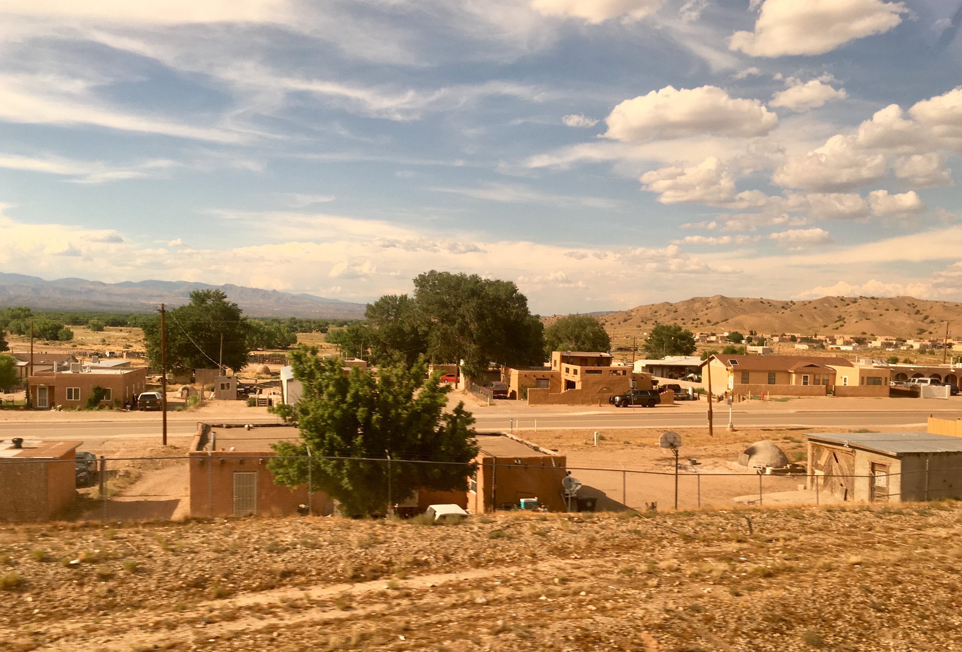 Enjoying the view from the observation lounge as the train passes through Kewa Pueblo, New Mexico