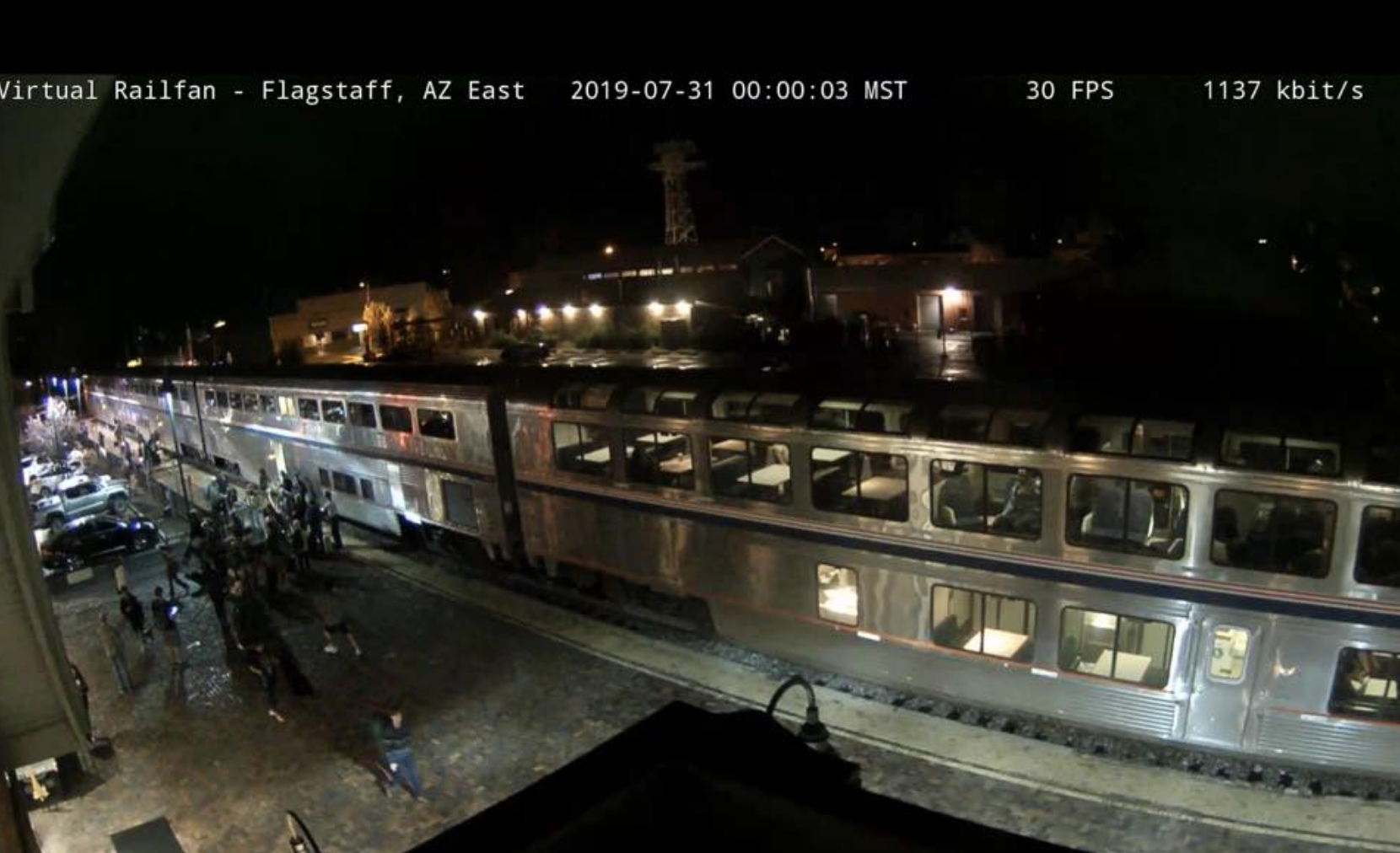 Webcam footage via Virtual Railfan of the Southwest Chief after its arrival at Flagstaff. I have a stripy jumper and green backpack.